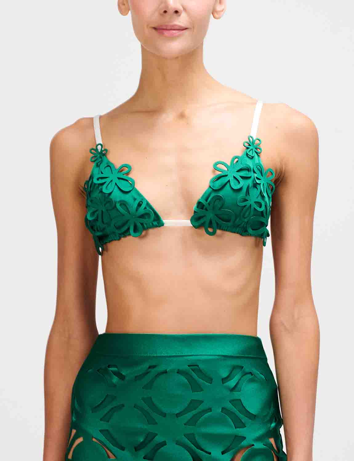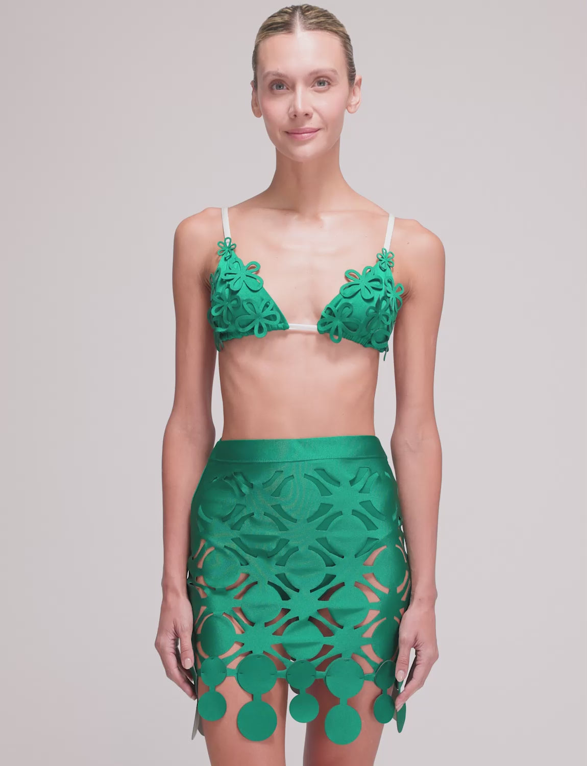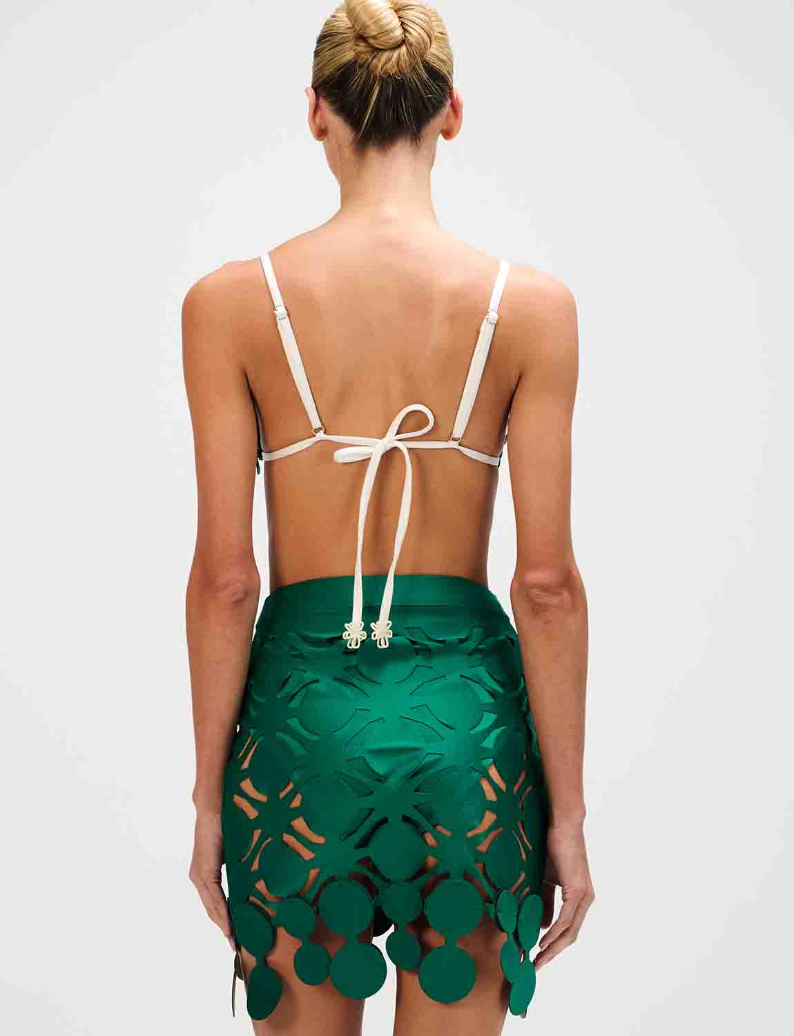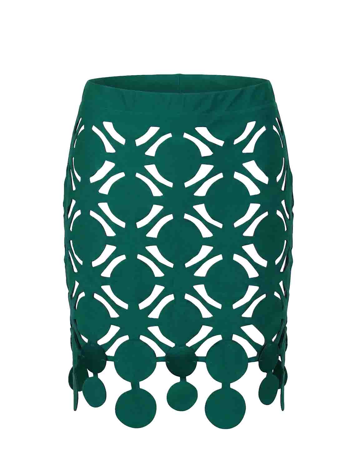 Falda corta con diseño exclusivo y creativo en corte láser, con pretina con elastico.