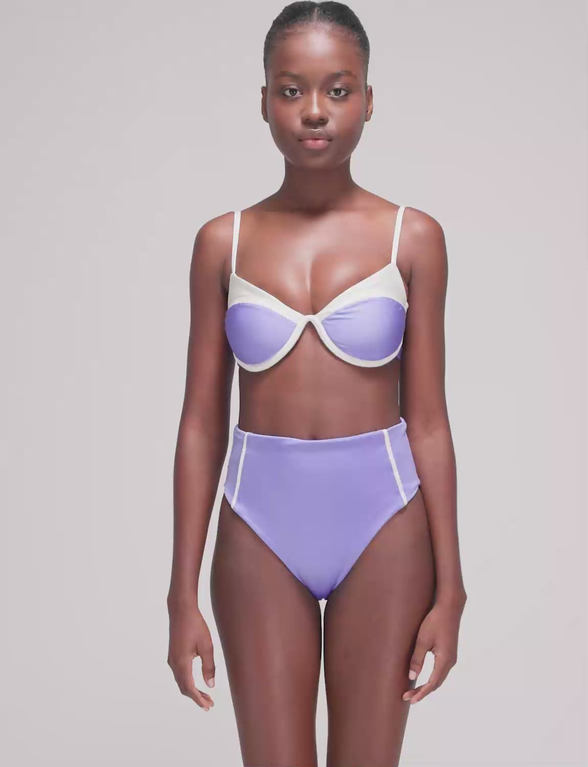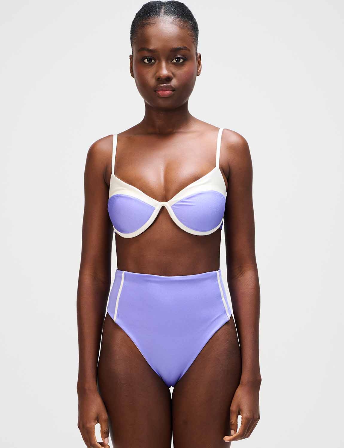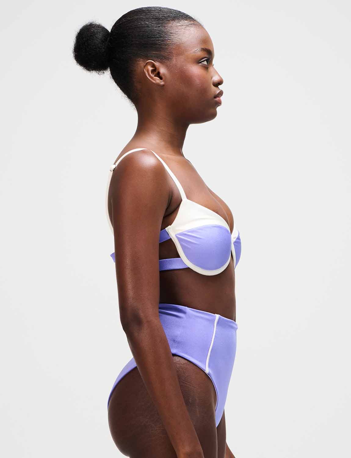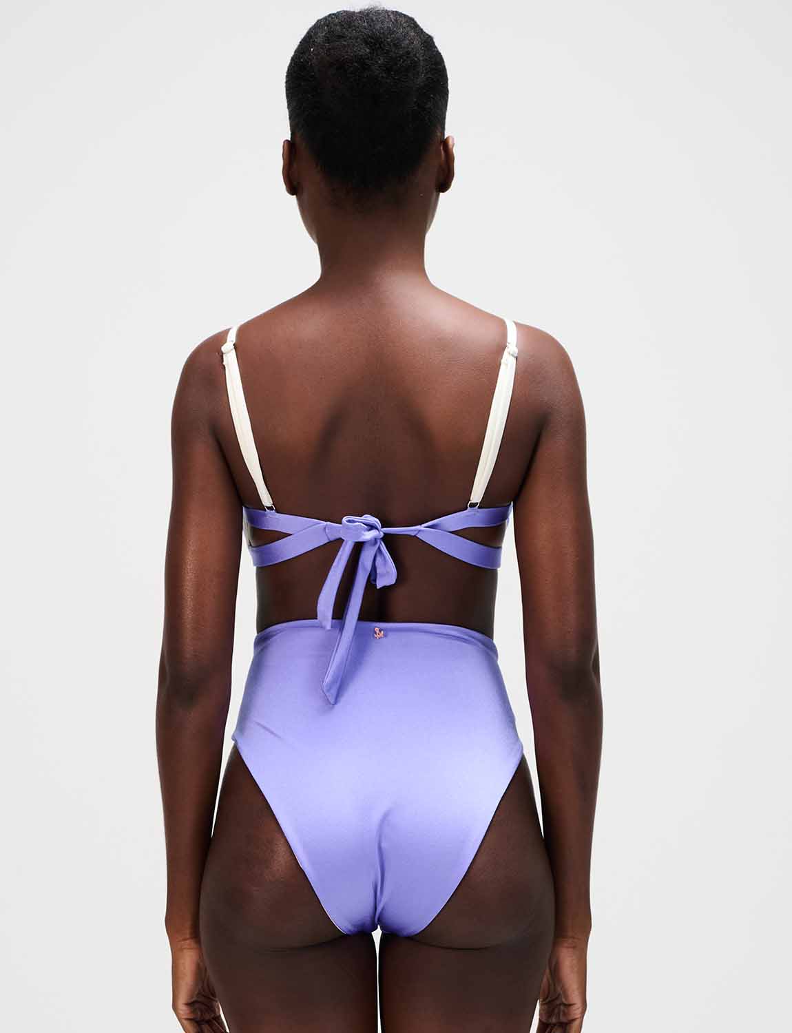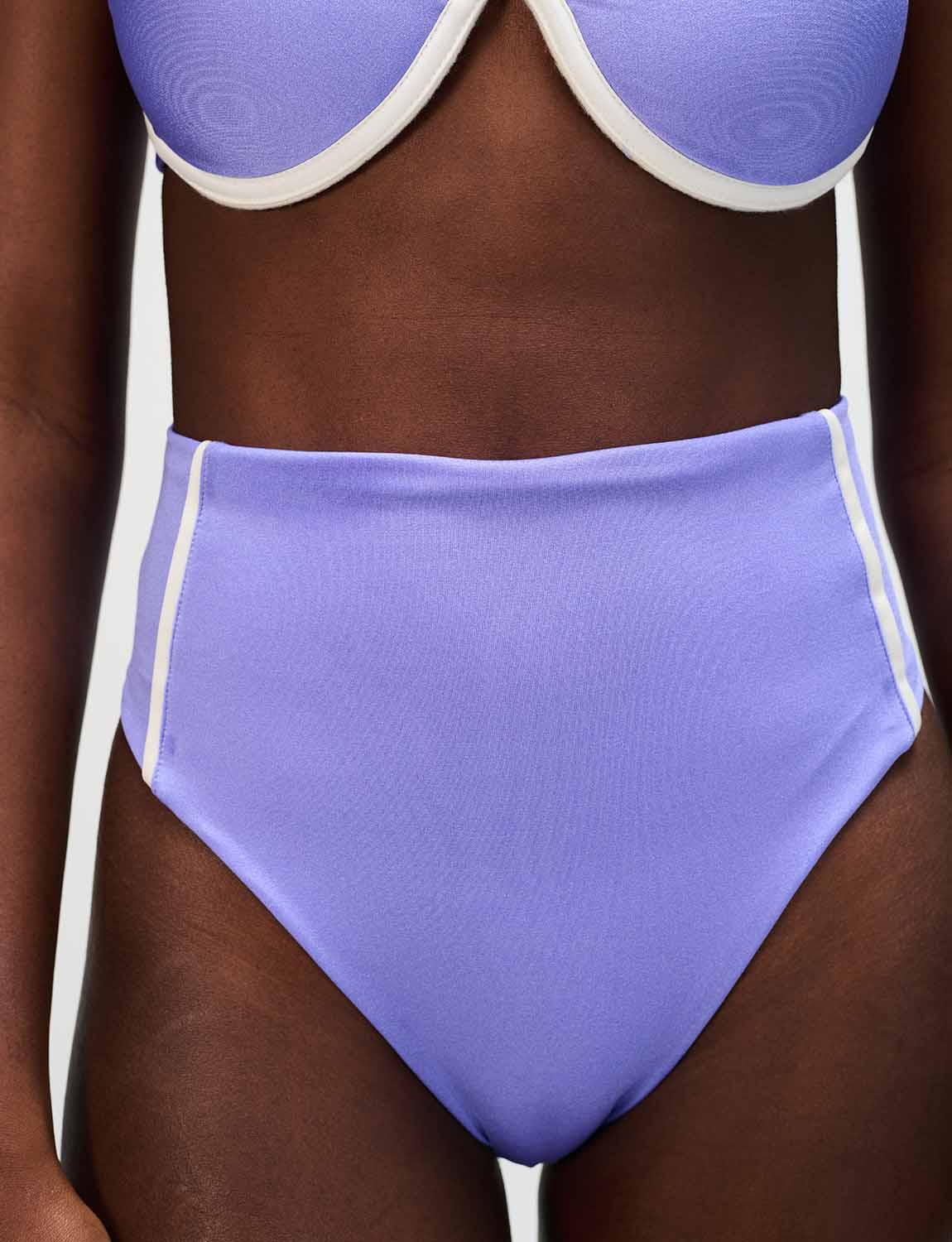 Bottom alto con la icónica silueta ANCORA, diseñado con sesgos en contraste laterales.