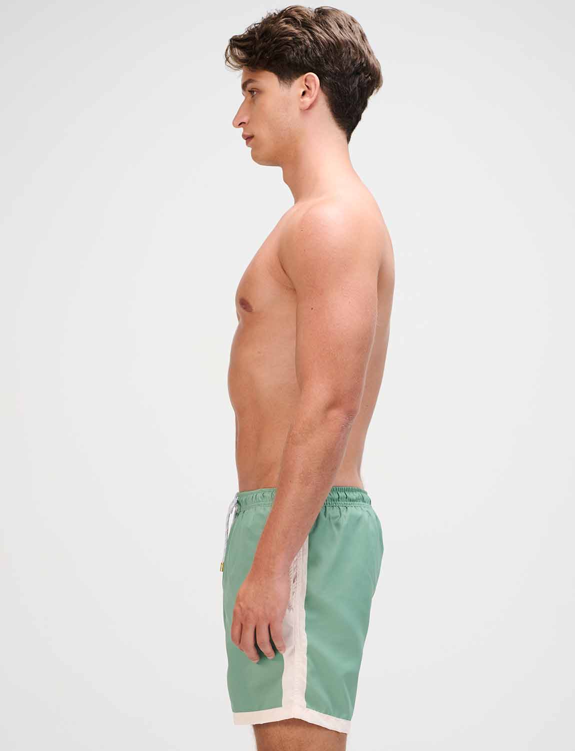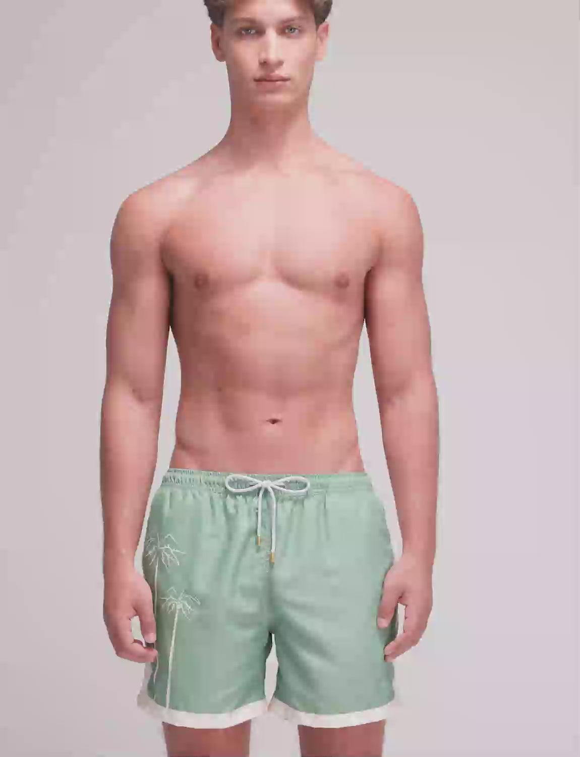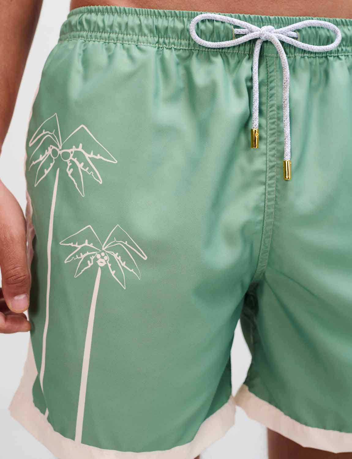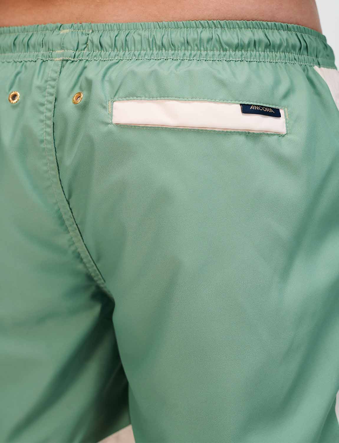 Pantaloneta de baño con print exclusivo ANCORA, cintura elástica con cordón ajustable, bolsillos laterales y malla interna.