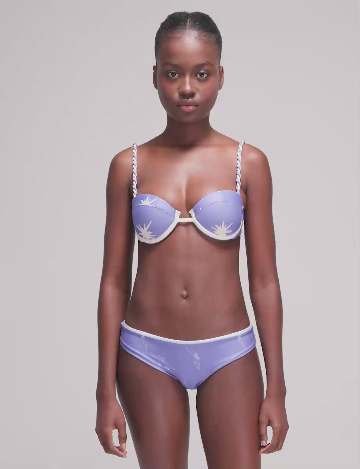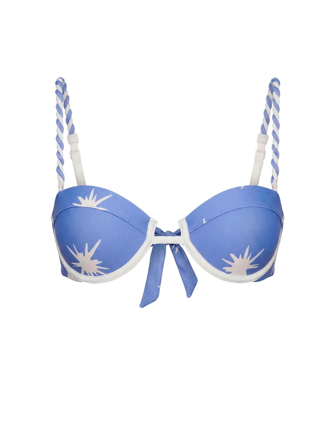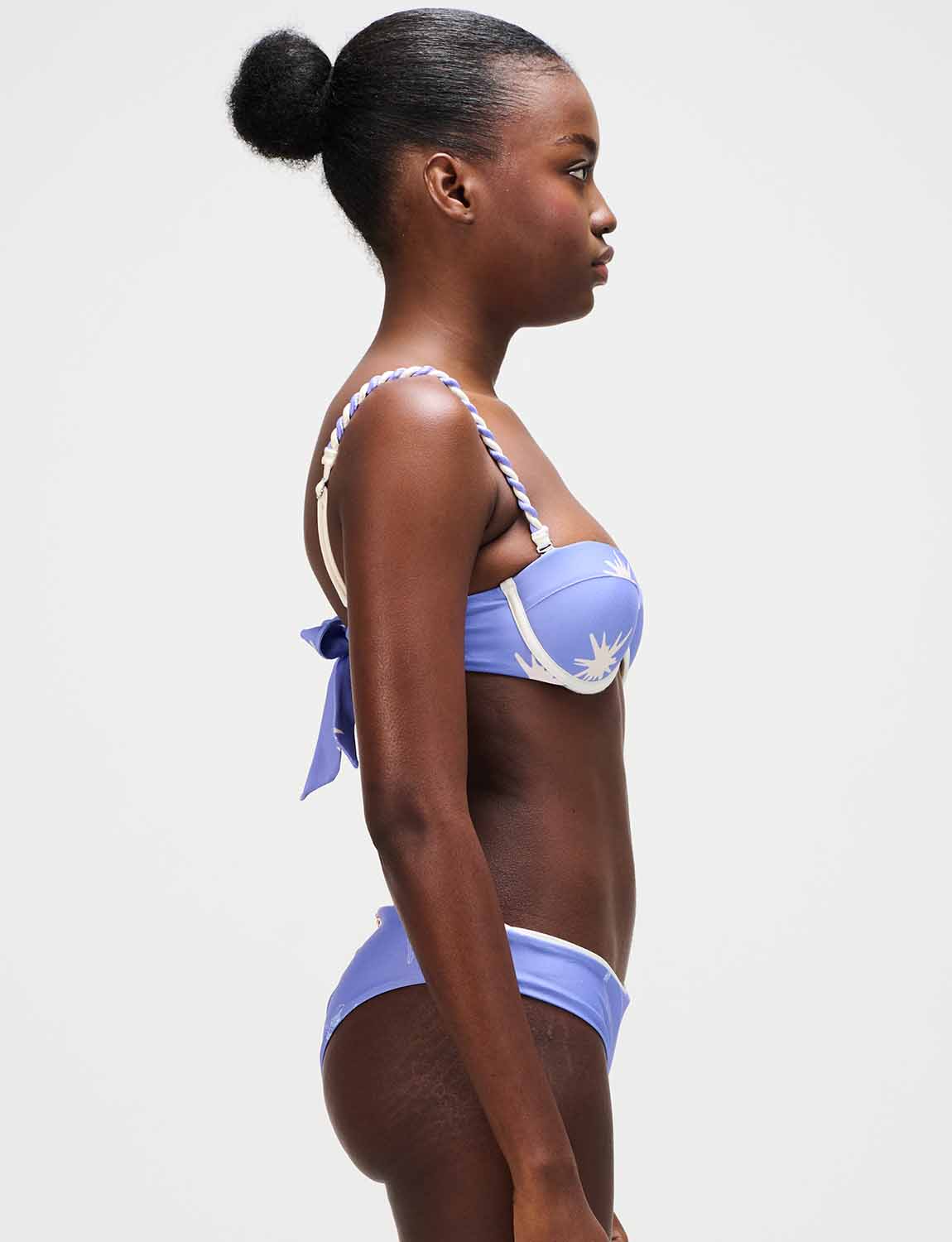 Top de copa fija con la icónica silueta ANCORA, estampado localizado, tirantas trenzadas a mano y espalda ajustable.